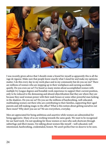 I was recently given advice that I should create a brand for myself as apparently this is all the rage de rigueur. Make sure that people know exactly what I stand for and make my opinions matter. I do this every day in my work place and in my community but do you see me? There are millions of women who are stepping up in their workplaces and earning accolades quietly. Do you even see us? I’ve heard so many stories about accomplished women with multiple Ivy League degrees and bonafide work experience to support their current position, only to be reduced to the demeaning and absurd objectification that they are where they are because they used woman power with their male bosses or some other powerful man lurking in the shadows. Do you see us? Do you see the millions of hardworking, well-educated, multitasking women out there who are contributing to their families, supporting their aged parents and still making magic in the office? What is this notion about getting ourselves out there more? Why don’t you see us? We are everywhere, everyday. Men are appreciated for being ambitious and assertive while women are admonished for being aggressive. Many of us are working towards the same goals. We want to be recognized for our hard work. I’m not speaking for those women or men who seek shortcuts through subterfuge and illicit means. I’m talking about women like myself – well-educated, well intentioned, hardworking, credentialed, honest. We aren’t perfect but we deserve to be seen.