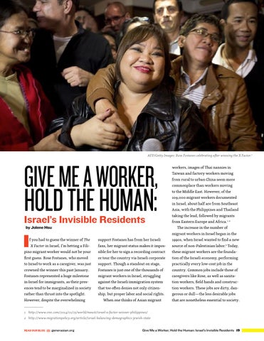 1 http://www.cnn.com/2014/01/15/world/meast/israel-x-factor-winner-philippines/ 2 http://www.migrationpolicy.org/article/israel-balancing-demographics-jewish-state