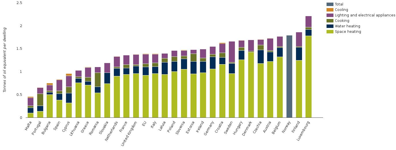 Figure 2.1 Energy consumption by end use per dwelling..................................................................................26