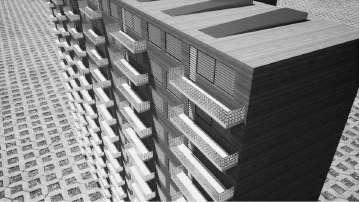 *theshellisfollowedbyanadvancedfacadesystem thathasbuilt-intechnologyofsolarcellsthathelp withthepassiveheatingofthebuilding'sfacade,in addition,theshellisalsocomposedofshading