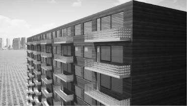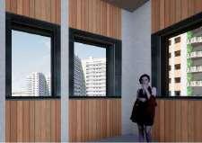 Despitethehighformfactor,thebuilding's galleryapproachrepresentsalayerof insulationonthenorthside,betweenthe exteriorandtheresidentialpart.