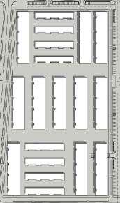 Theshapeoftheobjectsisarectangle. Eachbuildinghastwoentrancesanda smallcorridor.Therearefiveapartmentsin eachentrance,twoorientedontwosides, andthreeapartmentsorientedonlyonone side.