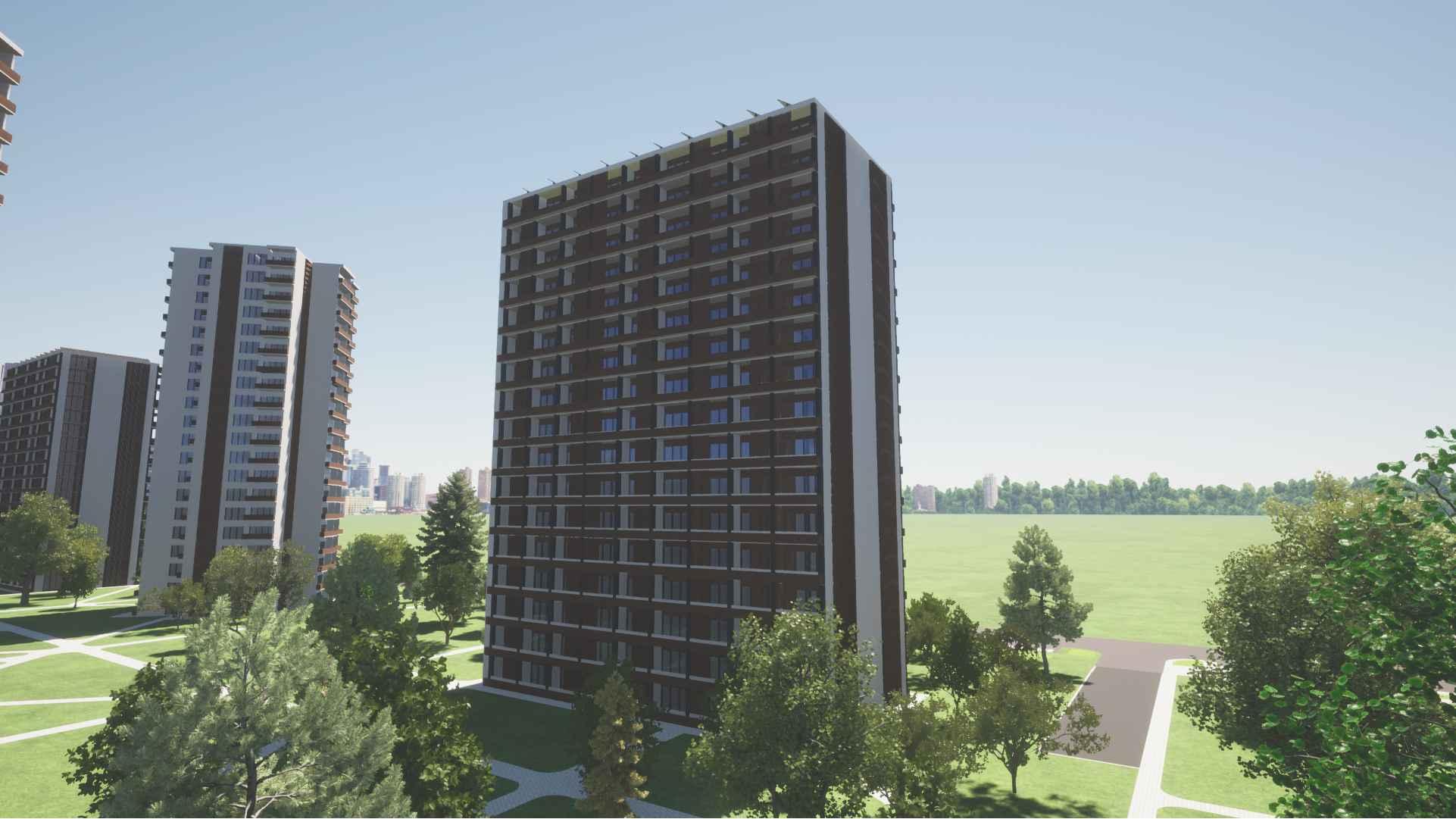 Thelocationisinthecentralcityarea.Inthepast,thefurniturefactory-Treska waslocatedhere. ThenewurbansolutionforthislocationconsistsoftowerswithaheightofGF+19 andblockswithaheightofGF+16.Theirplacementdependsontheorientation, orratheronthelargeshadowsthattheseobjectscastontheenvironment.