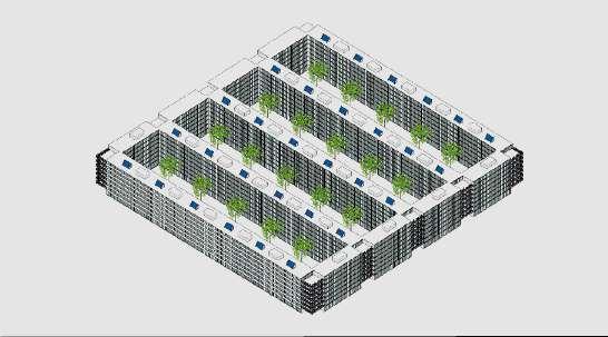 Theorientationofthemegastructurehasbeen developedandplacedwiththeapartmentstowards thesoutheast,southandsouthwest,thusallowing theapartmentstobeorientedtowardstheshadow raysduringtheday,therebyobtainingthegreatest numberofilluminatedroomsduringtheday.