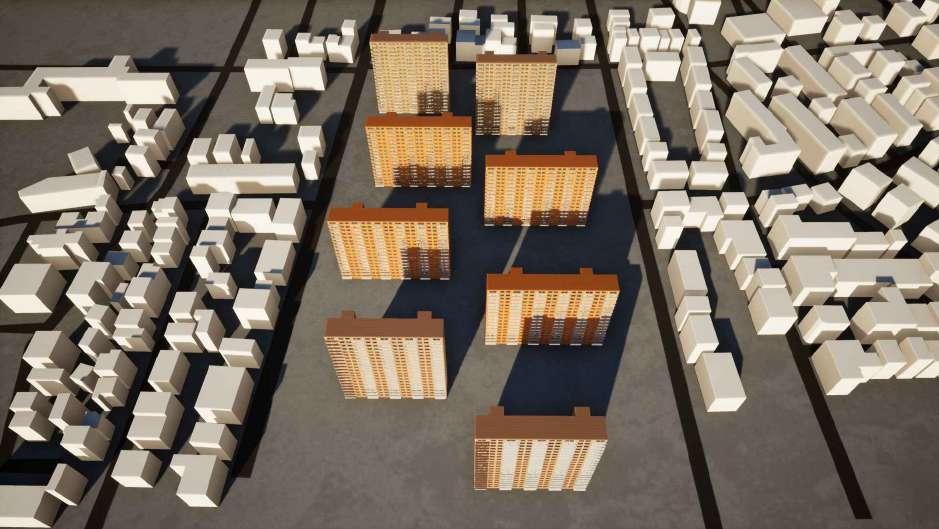 theyarefacingnorth,andthatwaynonorth-facingapartmentswill appear.Thatwayareplaced9buildings,whileinbetween3more buildingsappearattheangle,inordertoachieveacloserrelationship withtheothers