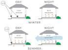 avoidinghot, summerandcold, winterwinds wellinsulated externaland internalwalls deciduoustrees-goodfor suncontrol