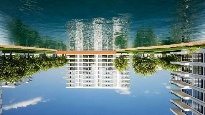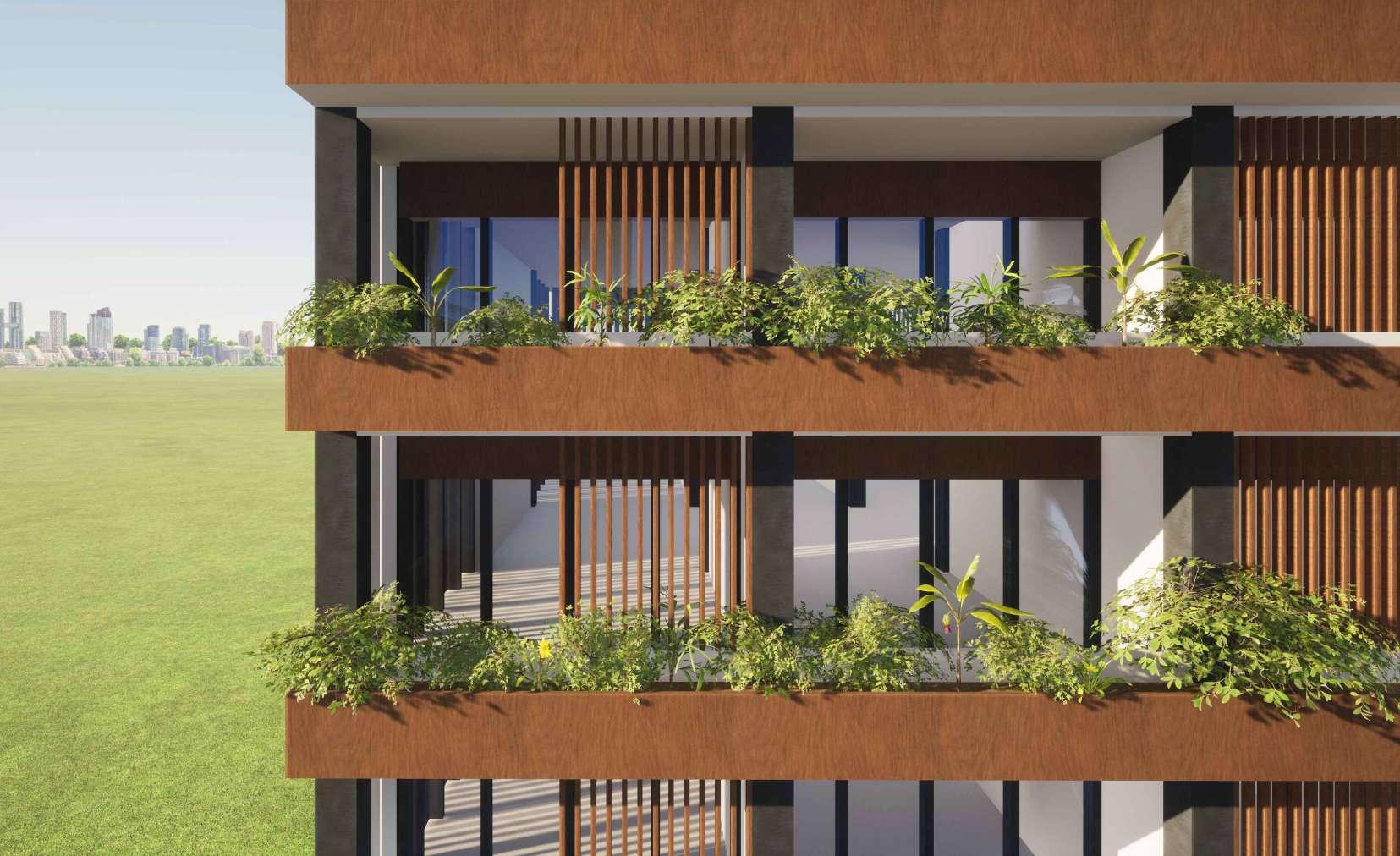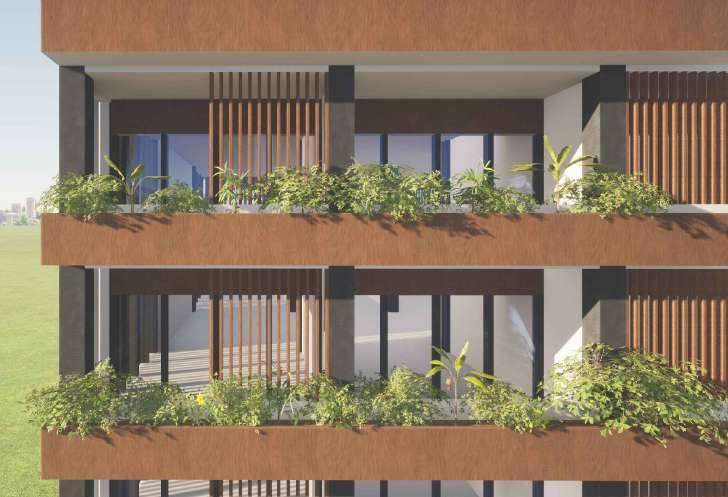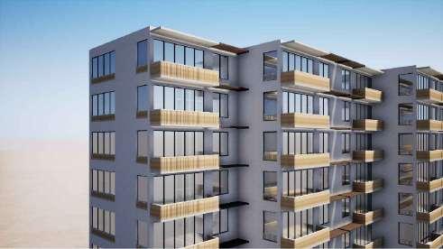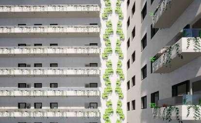 Withtheformofacascade,thebuildingaimsformultiple orientations,thatwaytherearemaximumsunnyhoursin theapartments.
