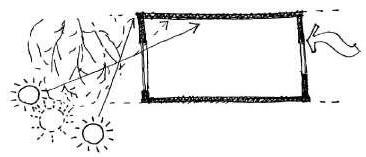 Sunlightisusedinwintertowarmthebuilding, whileinsummerthebuildingneedsshadesfrom thesun'sheat.Thatcanbemadebecausethesun hasasmallerangleinthewinter(allowinglightto enter)andalargerangleinthesummer(allowing thesuntobeshaded).