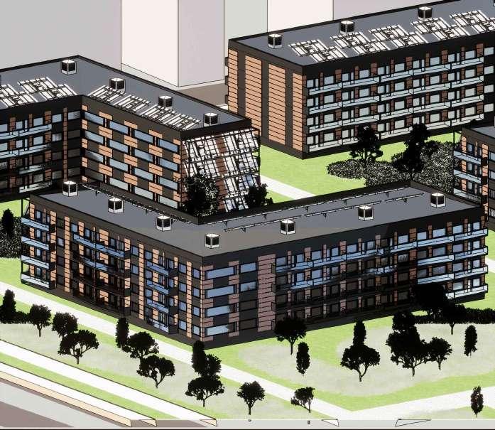 Thelocationisonthelandoftheformer"Treska"furniturefactory, whichtodayaboundswithalotofgreeneryandrepresentsan excellentplaceforcreatingurbangreenery,thereforethisconceptis reducedtofree-standingbuildingsthatformparksbetweenthem. solarheat,thusreducingthedependenceonventilationandair conditioningsystems.