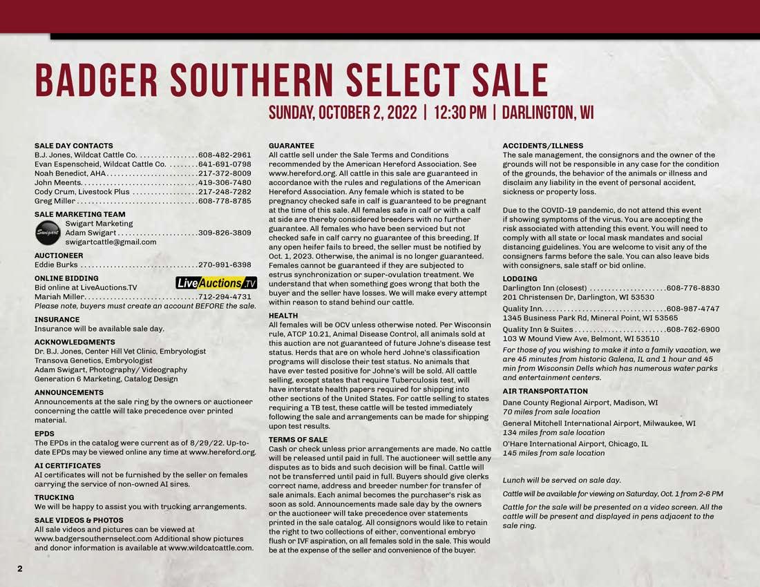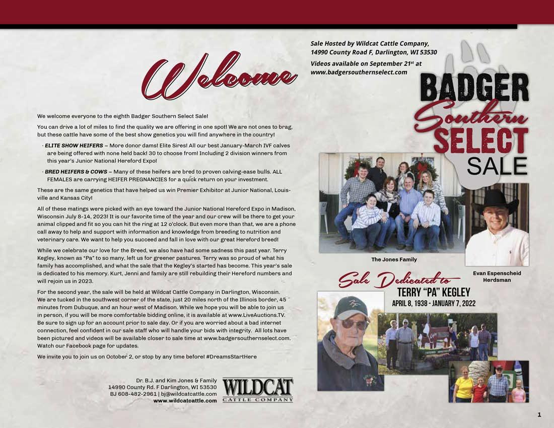 Designed by Generation 6 Marketing. Dreams start here! The Badger Southern Select sale will feature fancy show heifer prospects, bred heifers and donor prospects. Hosted by Wildcat Cattle Company near Darlington, Wisconsin on Sunday, October 2, 2022. Online bidding available through LiveAuctions.TV.