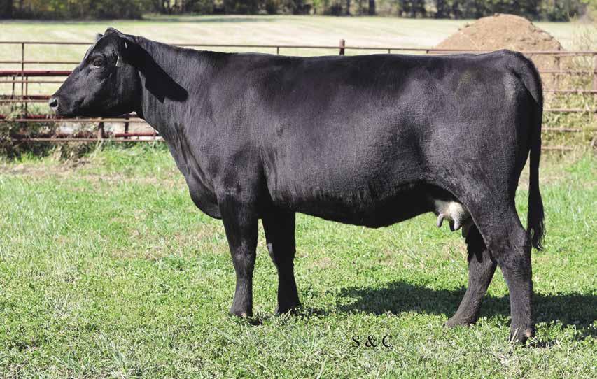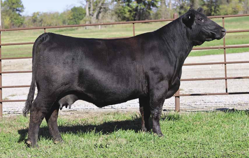 The quality of the offspring that the Up The Limit donor has brought to this sale are as good as we have ever offered. There have been many discussions as to whether we should be keeping this one for the donor pen. After the back-andforth conversation we always come back to the same conclusion, we have always wanted to bring our best to the sale table and here she is. This Tecumseh daughter is as good as any bred that we have ever offered. Bold in her rib shape, flawless in her skeletal build, stout hipped and moves like a cat. It’s like this that you wish you had a pasture full of. Bred to calve to the many time champion Reckoning 711F. AI’d to Reckoning 711F on 5/12/25.