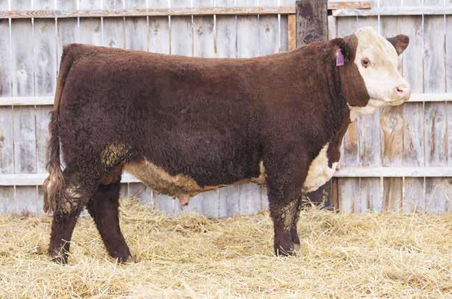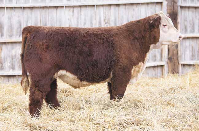 lbs. ILR HOMETOWN 332A ET {CHB} LJE 54Z LADY GUNNER 4F NJW 73S W18 HOMETOWN 10Y ET HARVIE GUNNER 54Z NJW 43T 4037 FOREVERN EDNA 28XET LJE Z712 GRACE 11D MCW UDDR TEAT CW FAT REA Marb $BMI $BII $CHB 102 1.4 1.3 68 0.030 0.47 0.11 $345 $414 $115 CE BW WW YW DMI SC SCF Milk M&G CEM 0.9 3.1 55 95 0.4 0.8 15.9 28 56 -2.4 Moderate framed 332A son. 7J posts a nicely balanced EPD profile and phenotypically backs it up. 7J ratioed at the top of his contemporary group for carcass characteristics. Dam is one of the better young cows on the ranch. J60 E 332A HOMETOWN J60 POLLED | BD: 8/15/21 | AHA#: 44309992 | Act. BW: 88 lbs. ILR HOMETOWN 332A ET {CHB} E 1414 DEBUTANTE E66 NJW 73S W18 HOMETOWN 10Y ET SR CCC TOP TIER 1414B ET NJW 43T 4037 FOREVERN EDNA 28XET E T719 PRECIOUS Z35 MCW UDDR TEAT CW FAT REA Marb $BMI $BII $CHB 76 1.3 1.3 69 0.020 0.47 0.11 $355 $417 $124 CE BW WW YW DMI SC SCF Milk M&G CEM 0.2 2.7 46 78 -0.1 0.7 16.2 30 53 0.9 332A son whose dam is a daughter of Z35, a donor we own with Hagen Cattle and Hay. Moderate framed bull here who should sire very useful cattle. E 1414 DEBUTANTE E66 Dam of J60 E 337U DIVA A008 Paternal Granddam of J58, J112 and Dam of K6 7