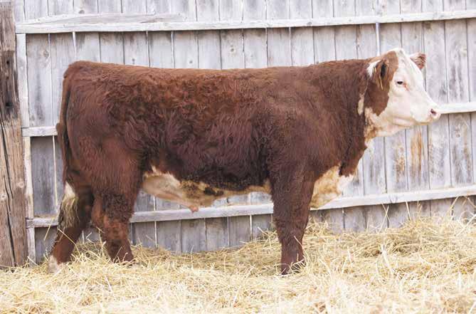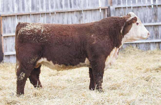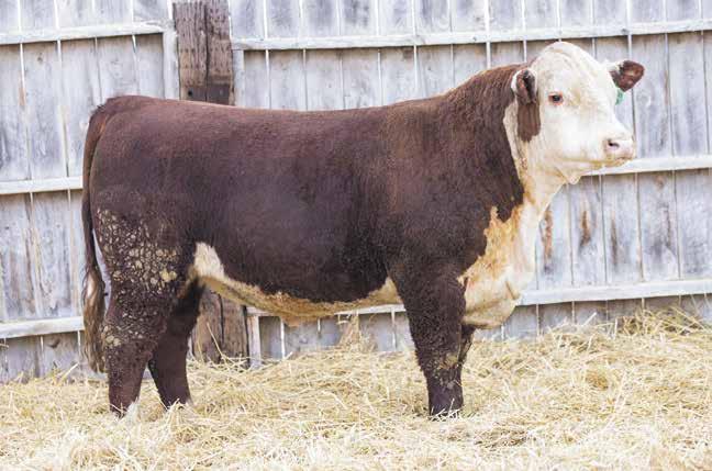 J50 E 252F WYATT J50 {DLF,HYF,IEF,MSUDF} POLLED | BD: 8/10/21 | AHA#: 44310073 | Act. BW: 91 lbs. NJW 79Z 33B FORWARD 252F ERNST MS BUILT TUFF 499 NJW 160Z 10W WHIT 33B KT BUILT TUFF 1010 BW 91H 100W RITA 79Z ET ERNST MS 8619 DOMINO 248 MCW UDDR TEAT CW FAT REA Marb $BMI $BII $CHB 83 1.5 1.4 76 -0.021 0.51 0.17 $368 $447 $133 CE BW WW YW DMI SC SCF Milk M&G CEM 5.8 2.6 66 93 0.3 0.9 16.1 36 69 0.4 Deep set, heavily muscled, moderate framed 252F son out of a low BW cow from Ernst Herefords. J50 is well pigmented and posts a nice EPD profile as well. J56 E 4140B MILES J56 SCURRED | BD: 8/12/21 | AHA#: 44310035 | Act. BW: 85 lbs. ILR H MILES 4140B ET E 337U DIVA B056 C MILES MCKEE 2103 ET HARVIE SAFNBFI COLATERAL 337U BOYD E70 QUEEN 0118 E 7W LADY TAILOR Y625 MCW UDDR TEAT CW FAT REA Marb $BMI $BII $CHB 85 1.3 1.2 62 -0.002 0.38 0.11 $360 $435 $110 CE BW WW YW DMI SC SCF Milk M&G CEM 1.2 3.8 58 91 0.3 1.0 17.5 28 57 2.1 Short marked, well pigmented Miles 4140 son out of a productive 337U dam. Nice balance here. J56 is scurred. 6 18 MONTH OLD BULLS