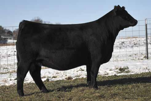 ROYAL CLASSIC FEMALE SALE / 13 HECKSEL SIMMENTAL FARM Lot 15 THSF Lover Boy B33 Service Sire of Lot 15 HSF Liberty Bell X004 Maternal Granddam of Lot 16 and Lot 17 Lot 16 CCR WIDE RANGE 9005A S D S GRADUATE 006X CCR MS APPLE 9332W HSF MEG G940 WELSHS DEW IT RIGHT067T HSF MEG E762 CE BW WW YW Milk API TI 12 6 0 2 78 1 117 2 12 4 132 0 76 5 AI’d to THSF Lover Boy B33 due on 1/21/23. This female takes me down memory lane when I go back and look at her pedigree . She is the fifth generation going back to one of my first show heifers This cow family is known for great udders, very productive females and lots of longevity J120 is a moderate framed, big bodied, all on top of a great running gear We have used Wide Range extensively they make some of the best female you can imagine Sells bred to the calving ease bull Lover Boy for and end of January calf HSF Marsha J120 15 Consignor: HECKSEL SIMMENTAL FARM Bred Heifer / PB SM / BD 1/23/21 / ASA# 4134839 / Tattoo J120 / Black / Polled MR CCF 20-20 MR CCF VISION HTP SVF DEW THE STROKE HSF LIBERTY D639 BSF OPPORTUNIST Z5 HSF LIBERTY BELL X004 CE BW WW YW Milk API TI 9 0 1 9 78 4 114 1 12 2 105 3 70 7 AI’d to OMF Epic E27 due on 1/21/23. If you like them big, stout, and powerful you will love this female The third high selling female in last year’s sale came out of this same cow family This gal her great granddam Triple C Miss Liberty was Reserve Champion Female in Denver a few years back as well as her grandsire was a past Denver Champion Angus Bull Sells bred up early to OMF Epic HSF Sage J107 16 Consignor: HECKSEL SIMMENTAL FARM Bred Heifer / 3/4 SM 1/4 AN / BD 1/7/21 / ASA# 4134765 / Tattoo J107 / Black / Polled