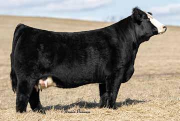 105 BD: 11/11/17 | ASA#: 3428547 | Tattoo: E185 | Black | Polled 1/2 SM 1/2 AN Cow-Calf Pair CONSIGNOR: RUSTIC OAK RANCH PMS RISE UP 999B BC CLASSIC 385-7 LLL MISS JOKESTER SCE COUNTESS C185 SCE BLACKOUT Y901 PF JJ MISS LOOKING FANCY0175 CE BW WW YW MCE Milk MWW Stay Marb BF REA API TI 12.0 0.4 62.2 88.3 5.6 10.0 41.0 14.0 0.20 -0.017 0.37 113.5 64.1 Lot 105A: Bull Calf / ASA#: 4068005 / DOB: 3/5/22 / Tattoo: 185K / Act. BW: 75# Sired by ANDJ/SCE BROAD BASE G102 (ASA#: 3776930) AI’d to WLE UNO MAS X549 (ASA# 2532016) on 5/17/22. PE to ANDJ/SCE BROAD BASE G102 (ASA# 3776930) from 6/7/22 to 8/16/22. Confirmed safe to AI date. A solid black female with low birth weight and high weaning weight EPDs. Produces high quality calves. Will calve in the Spring. SCE Isabella E185 106 BD: 9/24/15 | ASA#: 3075380 | Tattoo: 066C | Hetero Black | Polled PB SM Cow-Calf Pair CONSIGNOR: RUSTIC OAK RANCH SCE UPTOWN 709Z MR NLC UPGRADE U8676 KENCO LADY REMINGTON PMS SCARLET 628Y THSF FREEDOM 300N PMS SAVANNAH 254S CE BW WW YW MCE Milk MWW Stay Marb BF REA API TI 6.7 4.3 76.3 114.4 4.8 23.0 61.1 13.0 -0.01 -0.109 1.01 106.0 70.2 Lot 106A: Bull Calf / ASA#: 4068006 / DOB: 3/7/22 / Tattoo: 066K / Act. BW: 80# Sired by ANDJ/SCE BROAD BASE G102 (ASA#: 3776930) AI’d to WLE UNO MAS X549 (ASA# 2532016) on 5/17/22. PE to ANDJ/SCE BROAD BASE G102 (ASA# 3776930) from 6/7/22 to 8/16/22. Confirmed safe to AI date. If you are looking for a female who checks off all of the boxes you will find it with this one. Great disposition, very maternal, and produces great calves. PMS Deja Vu 066C LOTS 105 & 105A LOT 106 BULLS CONTINUED ON NEXT PAGE. 29 COW-CALF PAIRS