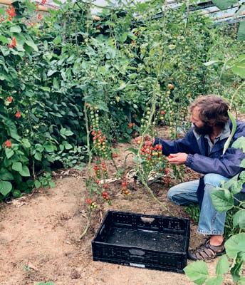 Tomaten werden von der Restaurantküche stark nachgefragt. Sie wachsen im selbstgebauten Gewächshaus aus vielen alten ausrangierten Fenstern.