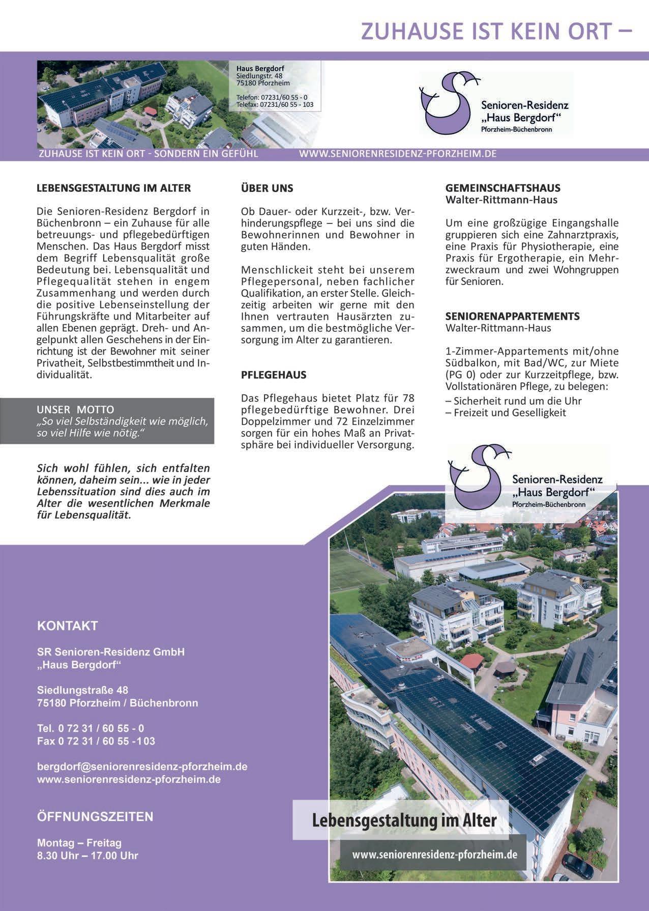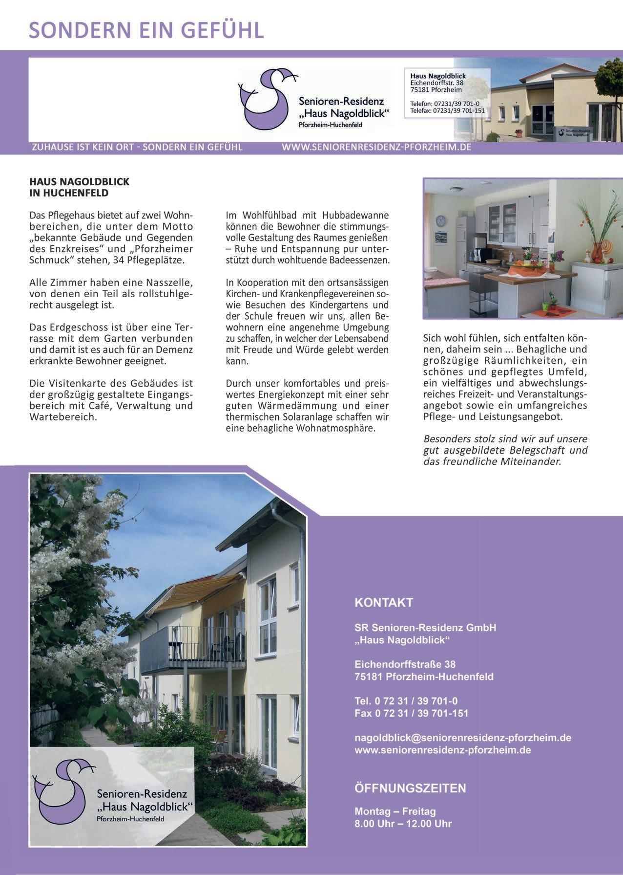 Erhältlich beim Herausgeber, den Filialen der Sparkasse Pforzheim Calw und dem KreisSeniorenRat Enzkreis –Stadt Pforzheim e.V. Ebersteinstr. 25, 75177 Pforzheim
