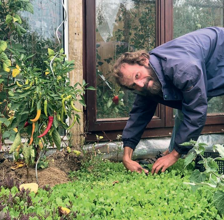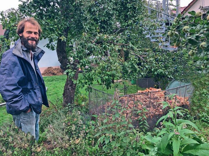 Die Schnecken haben ihn allerdings anfangs ganz schön Nerven gekostet, gibt er zu. „Wenn irgendwann der warme Regen kommt und die Pflanzen sind frisch gesät, dann sind die innerhalb einer Nacht abrasiert.“ Sein Notnagel war dann: ein Schneckenzaun. „Ich habe Türen gesucht, die verblecht waren, habe sie abgezogen und beim Nachbarn hingebogen.“ Denn ein weiteres wichtiges Prinzip der Permakultur ist: vorhandene Ressourcen nutzen, statt neu kaufen. Jetzt umrandet der etwa 15 Zentimeter hohe Blechzaun die Beete. Findet doch eine Schnecke ein Schlupfloch, rückt Bosch aber nicht mit Schere oder einem Ersäufungsbierbad an. Er tischt ihnen stattdessen noch etwas auf: „Die Reste, die in der