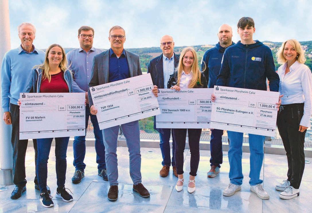 Fünf Sportvereine in der Region werden 2022 von der „Stiftung zur Förderung des Leistungs- und Wettkampfsports“ unterstützt. Kuratoriums-Vorsitzender Jürgen Kurz überreichte die Auszeichnungen in der Sparkasse Pforzheim Calw, wo die rechtlich unselbstständige Stiftung verwaltet wird.