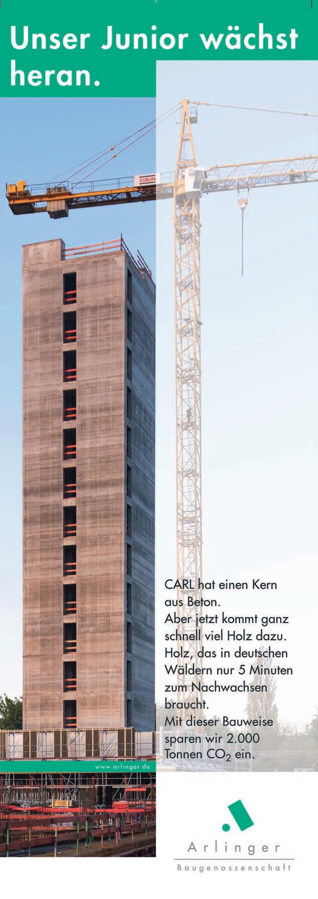 Jetzt werden kontinuierlich die vorgefertigten Holzbau-Elemente angeliefert und die Stockwerke wachsen Stück um Stück empor. Bezugsfertig soll CARL bereits im Herbst 2023 sein. Zusammen mit den beiden zum Ensemble gehörenden Baukörpern umfasst das Projekt 73 Mietwohnungen und eine Kindertagesstätte. Darunter entsteht eine Tiefgarage mit 73 Stellplätzen – alle mit Wallbox ausgestattet.