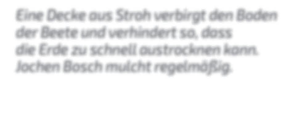 So spielen die mit großen Blättern Sonnenschirm für kleine und empfindliche. Die verdursten dann auch nicht so schnell, weil der Boden langsamer austrocknet. Jochen Bosch gießt meist nur die Setzlinge regelmäßig. Dafür sorgt auch die Decke aus Stroh, die den Boden in den Beeten verbirgt. Hier wird gemulcht, was das Zeug hält. Und