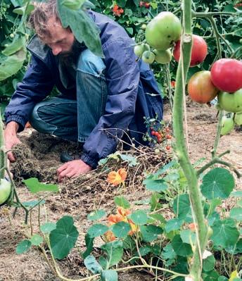 Stickstoff aus der Luft in den Boden ein. Und dann setze ich Starkzehrer daneben, Tomaten. Die können den Stickstoff perfekt wieder verwenden.“ Die Pflanzen beschatten sich auch gegenseitig. Im