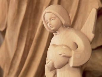 rumgesprochen und bescherte mir auf diese Weise erste Einkünfte.“ Heute noch hängen am Scheunentor ein wenig verwitterte Masken, die jene kurze Schaffensperiode überdauerten. Später entstanden in Angeles Werkstatt frei gestaltete Figuren, etwa Müllersknechte, Heilige, Krippen oder Barockund Rokokorahmen für Bilder und Spiegel. Vor einigen Jahren gab Angele den von den Eltern übernommenen Bauernhof auf und widmete sich fortan Holzarbeiten, die nur noch von wenigen alten Schnitzern hobbymäßig ausgeführt werden.