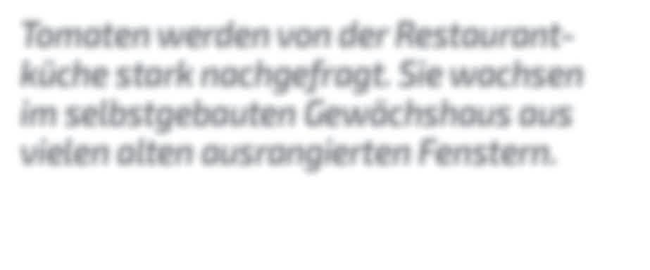 Das meiste, was hier so prächtig wächst, auch wegen der angesetzten Brennnessel-Jauche, schafft es auf die RestaurantSpeisekarte. Vor allem Tomaten werden in der Küche stark nachgefragt. Dafür hat Jochen Bosch ein Gewächshaus gebaut. Auch hier war er natürlich kreativ: Das Häuschen besteht aus vielen alten ausrangierten Fenstern. Statt Pfeffer, der ja aus Indien kommt, verwendet sein Bruder mittlerweile hin und wieder Japanischen Wasserpfeffer, der ebenfalls in Boschs Garten wächst.