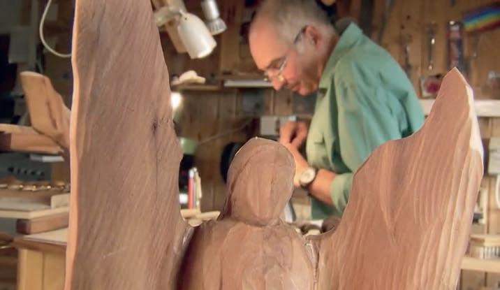 Der Schnitz-Künstler Leonhard Angele in seinem Element. Hochkonzentriert fertigt er in seiner nach frischem Holz duftenden Werkstatt Holzmodeln oder Nudelstempel an. In der Weihnachtszeit herrscht Hochkonjunktur - auch dank seiner vielen Engel- und Krippenfiguren.