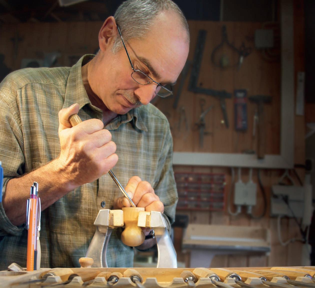 schaft betrieb. „Mich faszi nierte der lebendige Werkstoff Holz mit all seiner ursprünglichen Ausstrahlung“, erzählt Leonhard seinen Besu chern aus Kindheit und Jugend. Natürlich erinnert er sich dabei auch an seine erste