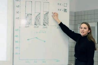 Nach erstem Zögern will Charlotte doch mit in den Betrieb einsteigen. In der Schule hält sie einen Vortrag über betriebswirtschaftliche Aufgaben.