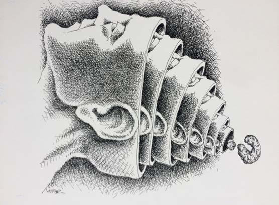 L’autore , classe 1943, l’ha realizzata nel 1965 . Non è possibile scriverla al computer, perchè si basa su un carattere inventato e illeggibile, una specie di m con una stanghetta in più, una sorta di doppia n attaccata, che è circa così: