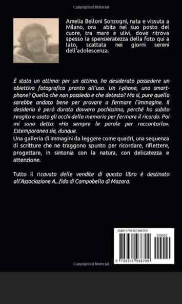 Ne approfitto per suggerirne la lettura. Si tratta di un librino lieve, ma a suo modo intenso, adatto all’estate che parrebbe in questi giorni arrivare. Si trova facilmente in rete; è disponibile anche per chi possiede un abbonamento ad Amazon Kindle Unlimited. Come tutto quello che scrivo, ha finalità benefica. L’ho legato all’Associazione A…Fido di Campobello di Mazara : un pugno di meravigliose e miracolose persone capaci di accudire, curare, ridare dignità e vita felice a tante povere anime quadrupedi, maltrattate o abbandonate. Di seguito la copertina e il suo retro.