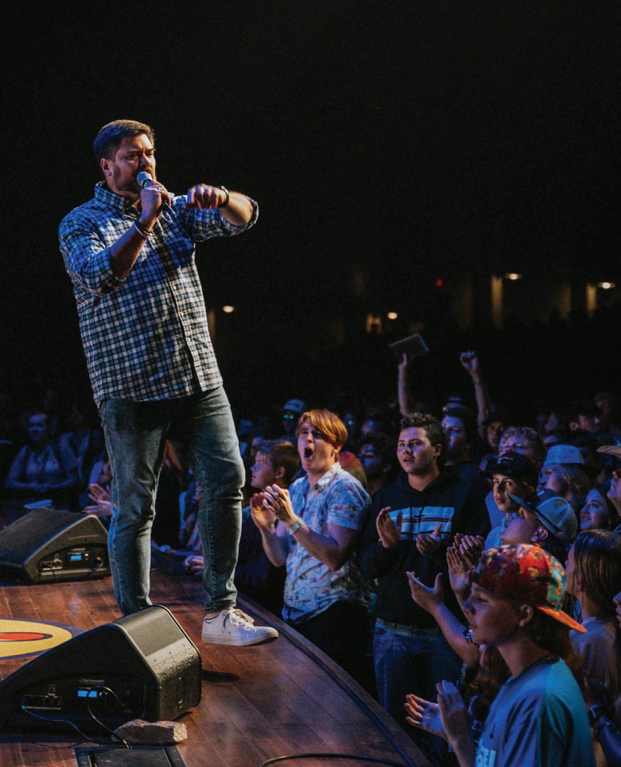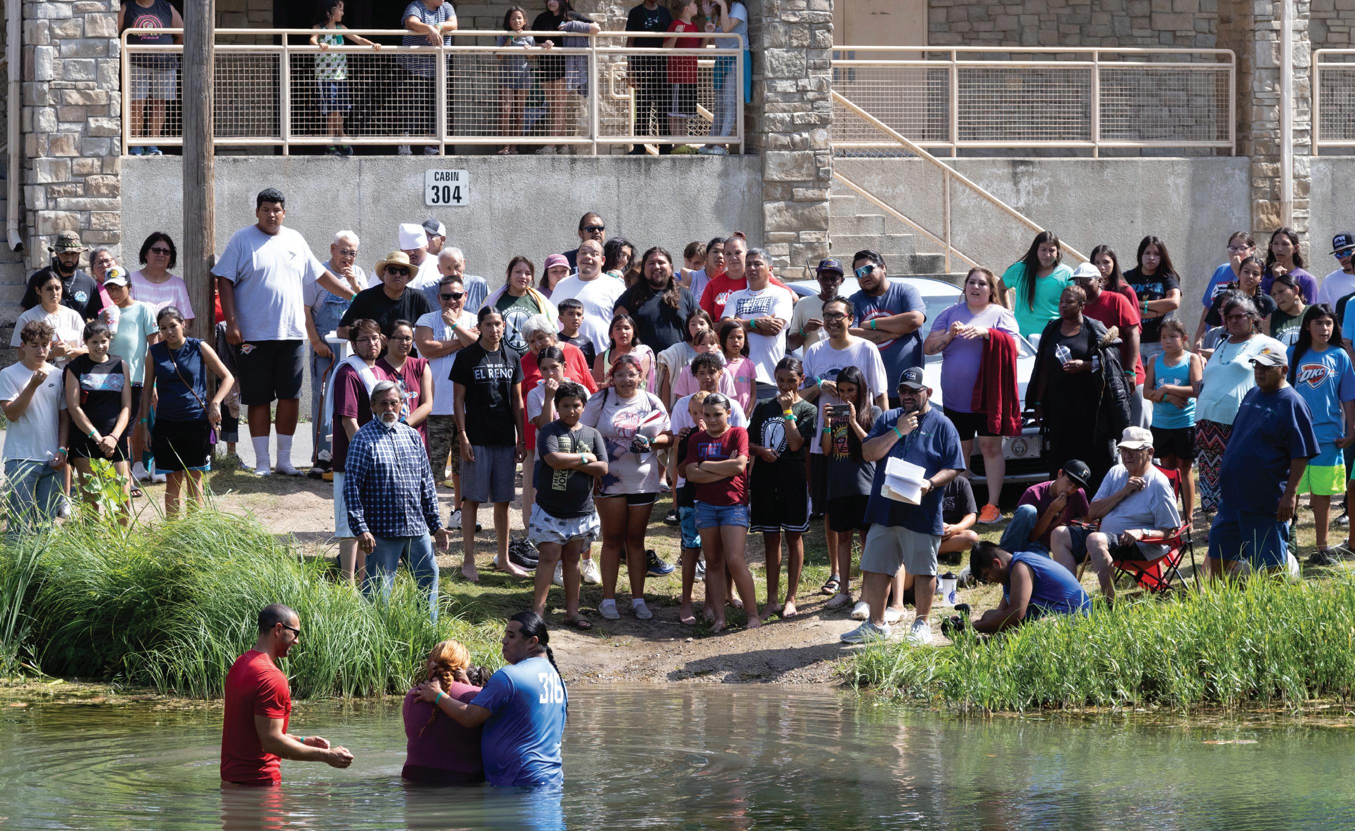 Baptisms like this one during Indian Falls Creek represent the thousands of lives changed each year at Falls Creek across dozens of different events. The entry pool at the campgrounds has seen many men, women, and children of all ages symbolically burying their old life in the water and beginning a new life in Christ. PG. 14