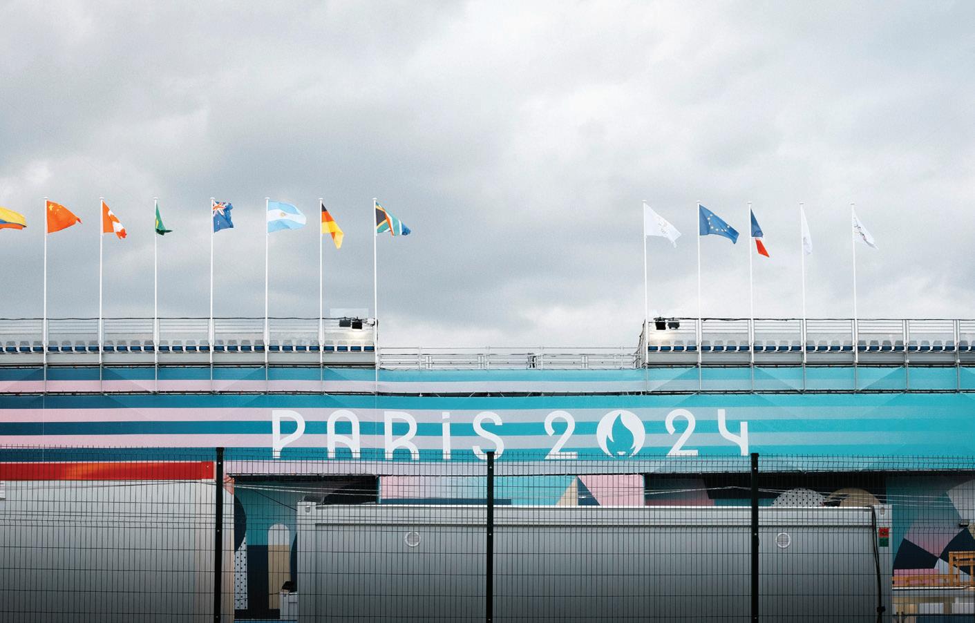Top: MOBILIZED IN MISSION – Many Southern Baptist volunteers arrived in Paris a few weeks before the Olympics to initiate gospel conversations with people in France. Middle : HOPE FOR THE HEART – Marjorie, a national partner, and Jared Long, an International Service Corp Paris team member, give out a New Testament on the streets of Paris to visitors who came to watch the Olympic games. Bottom : A GLOBAL GATHERING – Over 200 National Olympic Committees participated in the 2024 Summer Olympics in Paris. Flags flying above one of the venues symbolize this incredible global gathering, a visual reminder for Christians of the vast number of people from around the world, many of whom may have never heard the Gospel.
