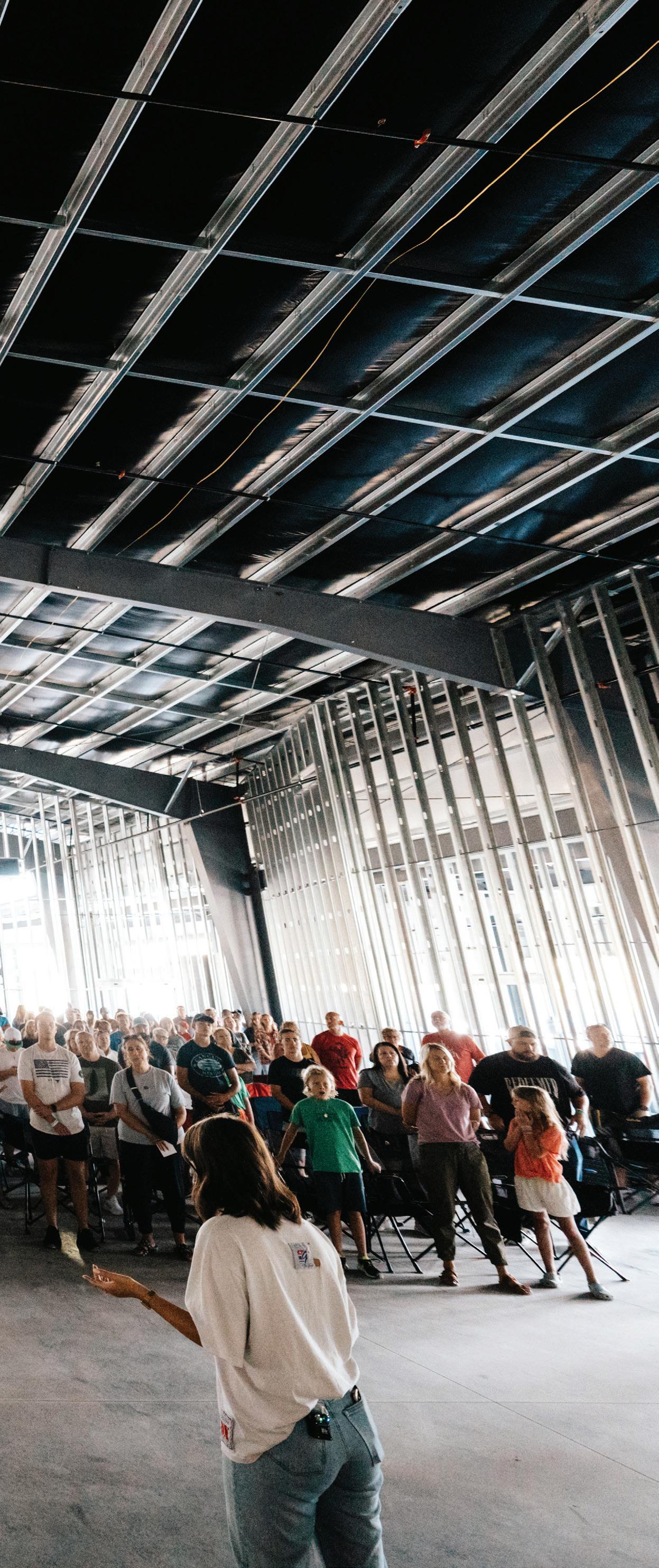 WORSHIP WITHOUT WALLS – Covenant Church gathers in their unfinished sanctuary, celebrating God’s presence amidst construction. Their new home represents hope, community, and an opportunity to transform more lives with the Gospel.