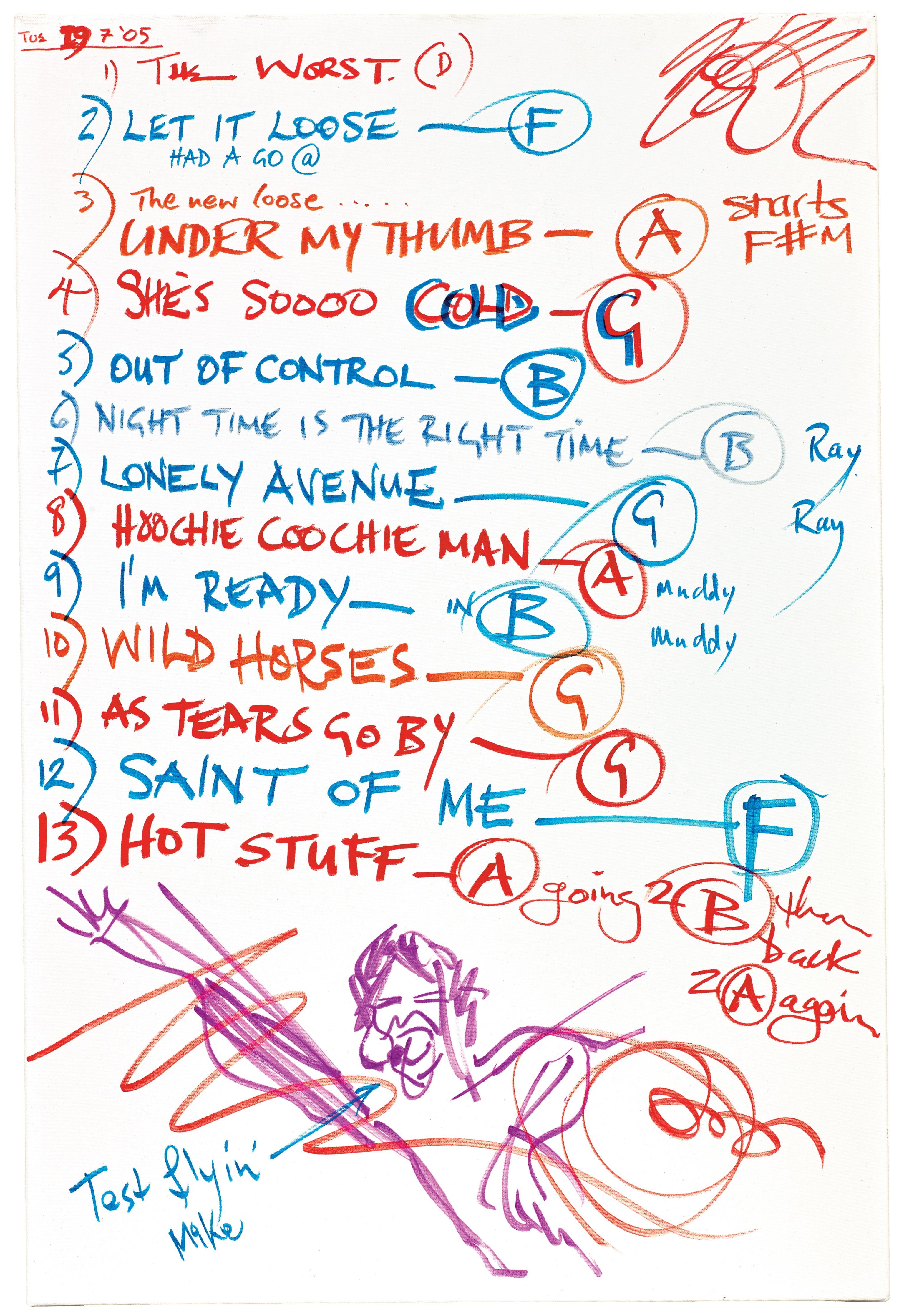 We don’t normally play ‘Let It Loose’ from the Exile album; it hasn’t been tried and tested live on the road. And ‘the new, loose “Under My Thumb”’ means we were throwing that song around, unplaying it very gently, almost not hitting. We did it for the hell of it and it sounded good at rehearsal.