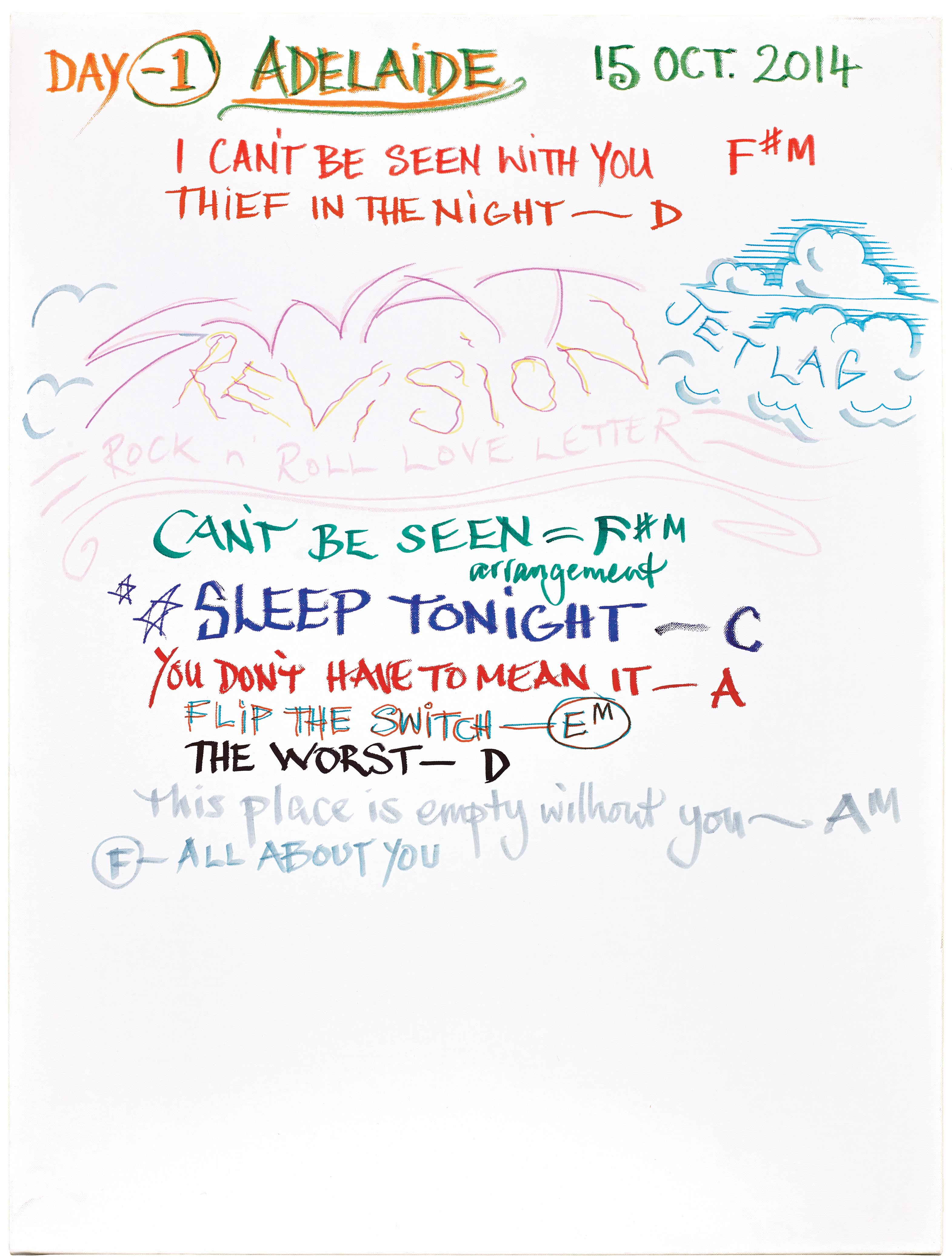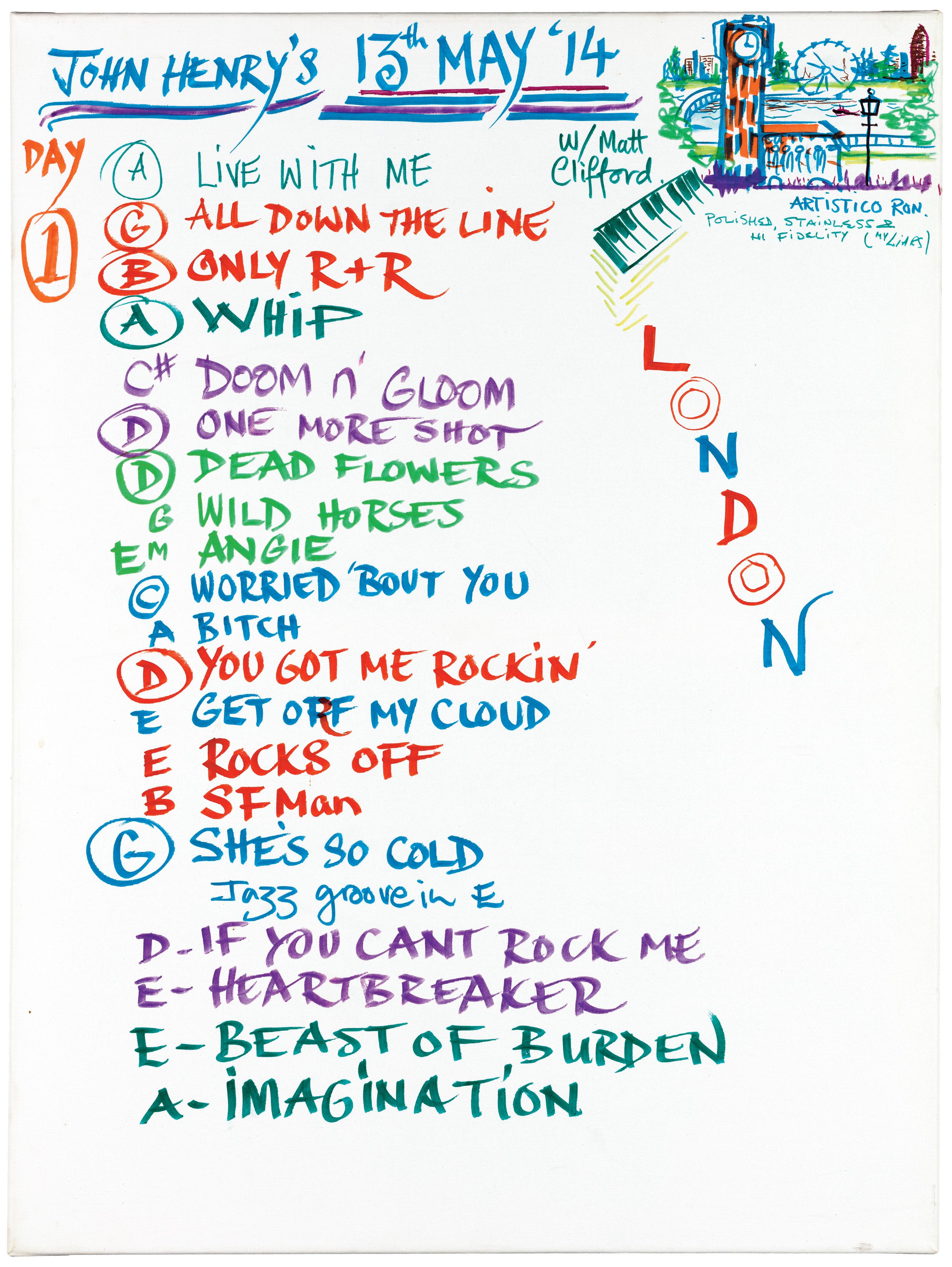 A heavy day of rehearsing split into two set lists Only ‘Hear tbreaker’ ‘Can’t You Hear Me Knocking and The Worst were not played on tour in 2014