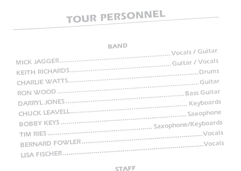 The Adelaide Studios were used for rehearsals Kar l Denson was on saxophone duties with T im Ries due to Bobby Keys’ ill health Day one was largely devoted to recuperation, with Keith Richards r unning through a few of the songs with his vocals