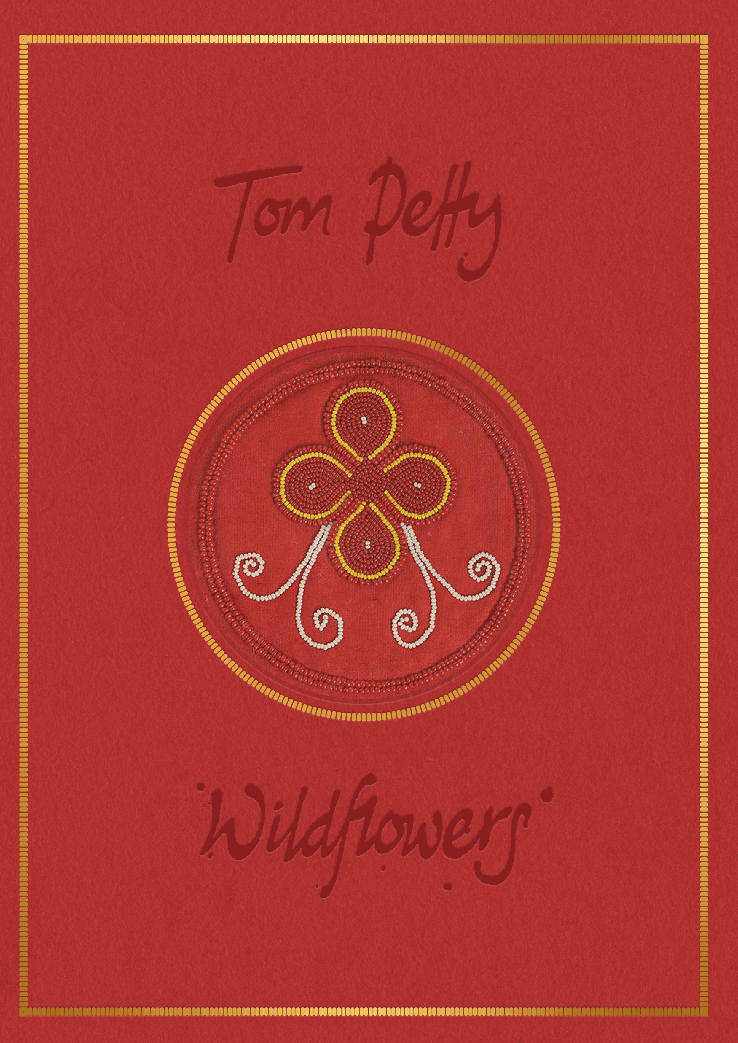 Numbered 1 to 350, the Deluxe copies are quarter-bound in red vegan leather, featuring a debossed Wildflowers emblem and spine lettering. The padded cloth cover features an inset photograph of Tom Petty during the Wildflowers recording sessions, with foil-stamped lettering, and gold page edging. The limited edition is presented in a red clamshell box, die-stamped with the Wildflowers emblem and finished with white and gold foiling. The interior lining is screen-printed with a design based on the grill cloth of Tom Petty’s VOX amp.
