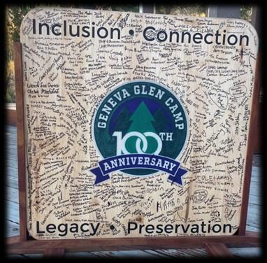Following the summer and a thorough camp cleaning by our amazing post camp crew, we rolled into the collection of 100th Anniversary celebration events. Our 100th Anniversary is best described through the sounds of laughter, songs, stories, enthusiastic shouts, and tears of joy. We draw particular attention to our Sunday Vespers Service during Family Camp, where we revisited our themes of Connection, Legacy, Preservation, and Inclusion. There were beautiful stories, singing, poems, and quotes, including Lisa Dontzin's poignant account of her experience in New York on September 11th, 2001, and visualizing herself at Geneva Glen while getting herself to safety. Then we recounted Iris Gilmore's words following the Lodge Fire in 1973, "the good that this camp has done through the years was the pride, character, goodness, and the fellowship that passed through those doors... that cannot be destroyed." Whether the Golf Tournament, Decade Reunions, Family Camp, the 100th BBQ, or the Meadow Time Soiree, one thing was apparent... As described by Lady Iris, Geneva Glen is made up of extraordinary people. This is the reason that Geneva Glen is 100 years old, why we are fully enrolled year after year, and why we are such a strong organization. We frequently receive the question, "who owns the camp?" Our 100th Anniversary reminded us of the answer: we ALL have a piece of "ownership." It's ours, it's yours, and it's our children's. Our Centennial celebration was magnificent; however, it's not all about the past. Now we set our eyes on the future. There are another 100 years to plan for and another 100 years of memories to make. Our vision moving forward is simple: ensure that the Magic of the Glen perseveres for the next 100 years for our campers. We must continue cultivating our leaders, volunteers, and donors willing to sacrifice to create the magic. We need new and upgraded facilities to meet our future and existing needs. We must protect our land, forests, trails, and campsites. We must continue recruiting high caliber staff and counselors from diverse backgrounds trained in 21st Century youth development skills. Finally, we must maintain and grow our campership and tuition assistance program to reduce barriers so that more and more people can experience the Magic of the Glen and make their own memories here. Everyone needs an opportunity to experience this place! Ultimately, our future will reflect our past: it will be a place where kids and young adults have the emotional safety and support to be their best selves.