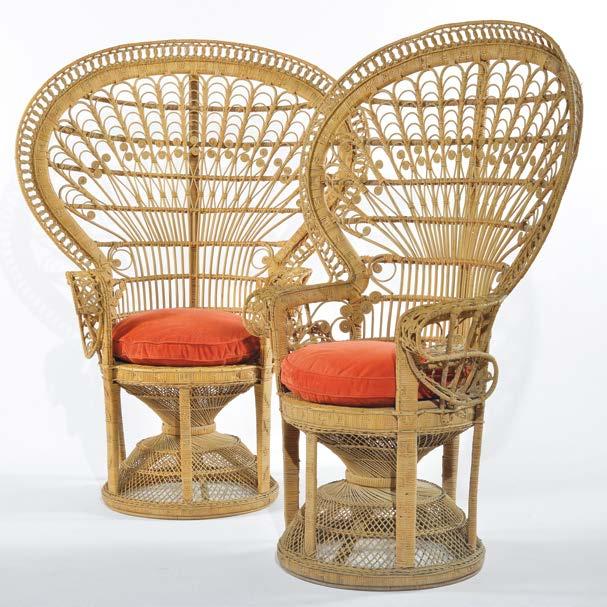 Osier, placets de velours orangé, XXe s, H 149cm 150/200