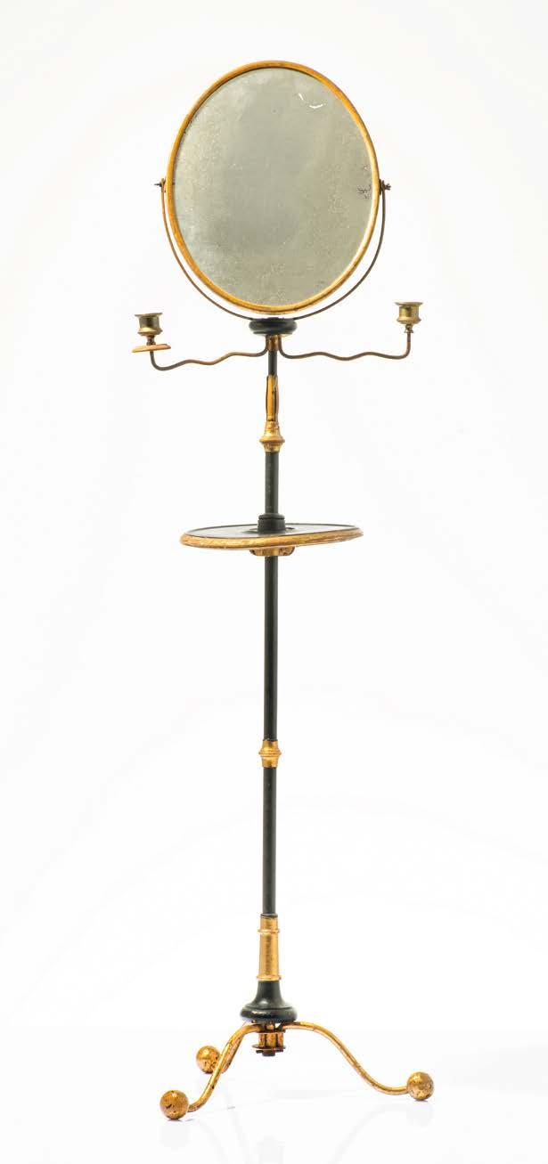 Piètement tripode, fût bambou, laiton doré, H 160 cm 400/600