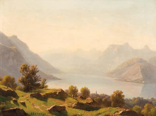 Paysage à la barque, huile sur toile, datée 1883, 64 x 45 cm 400/600