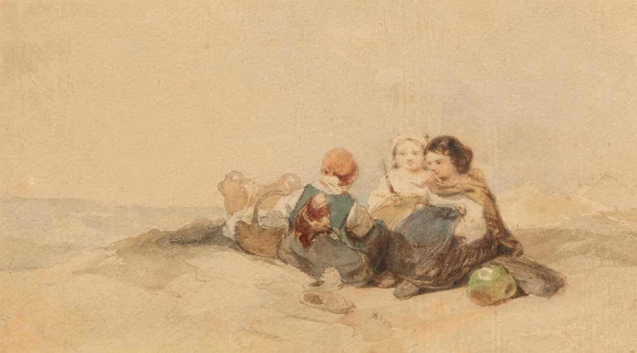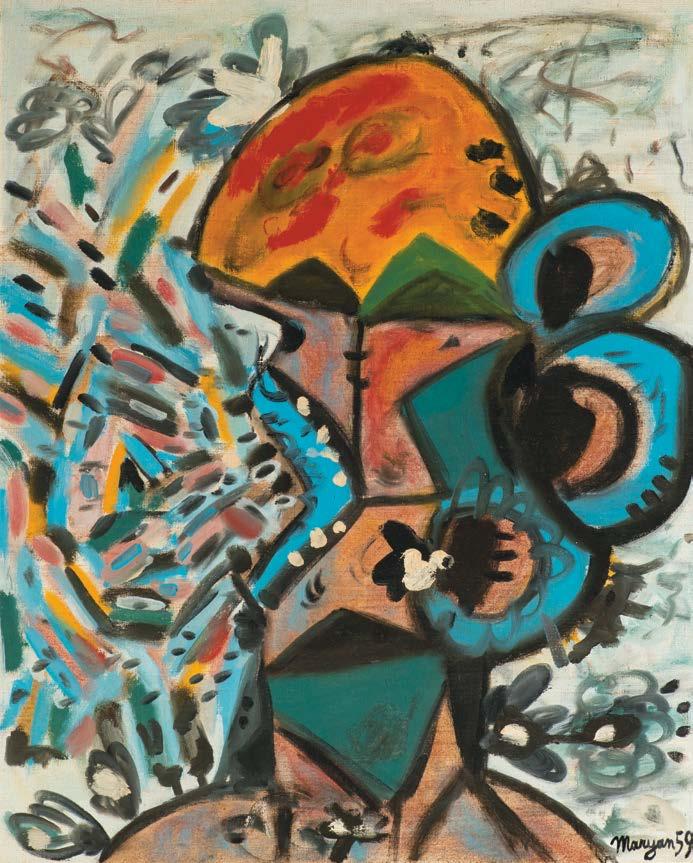 Trois paysannes aux robes colorées, huile sur toile, signée, 65 x 54 cm 30’000/50’000