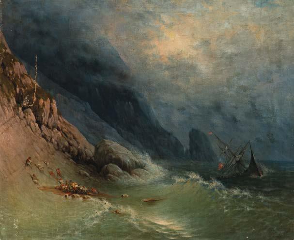 Naufrage de la frégate ottomane Ertu rul, huile sur toile, 49 x 60 cm 500/800