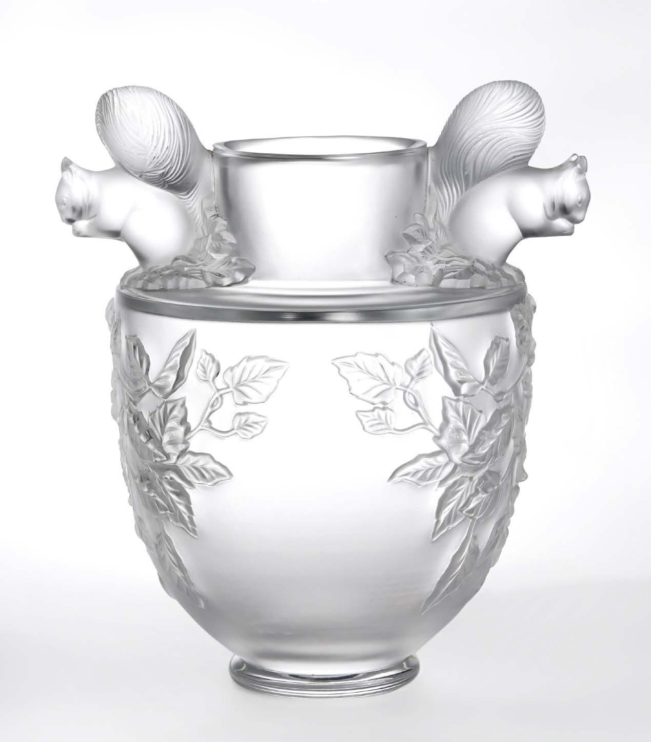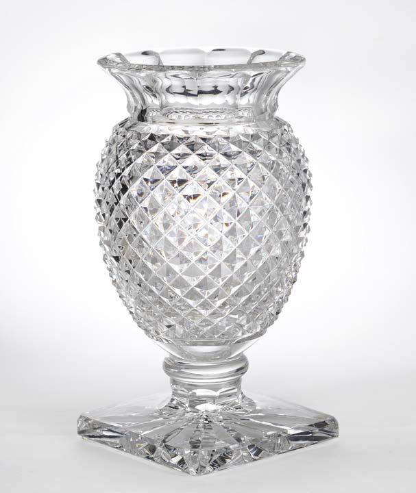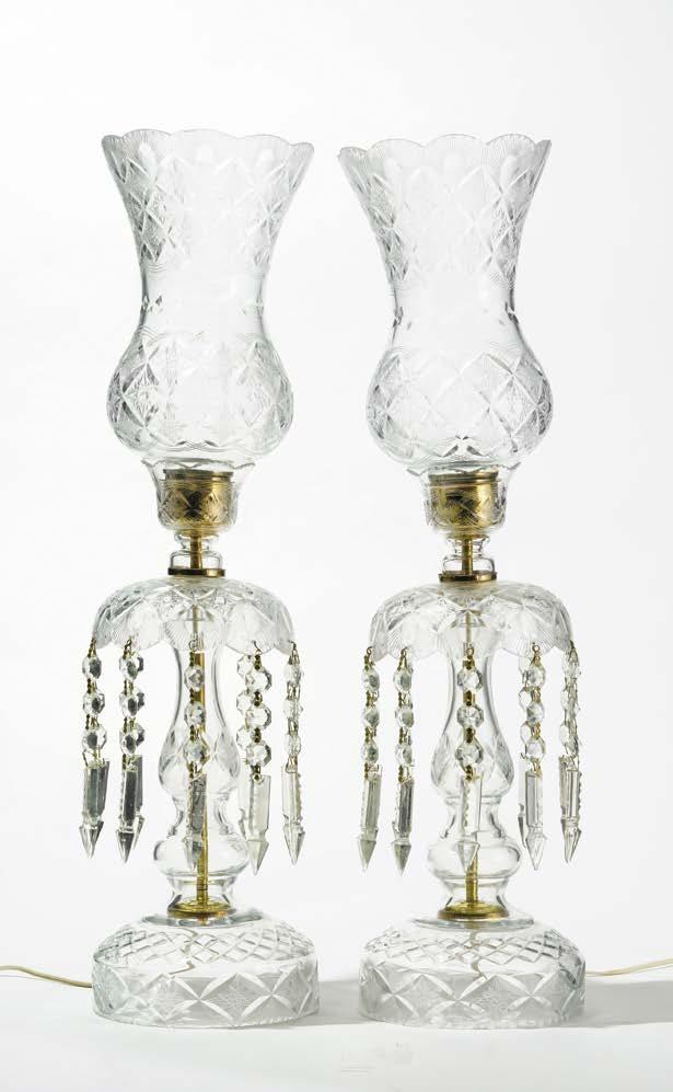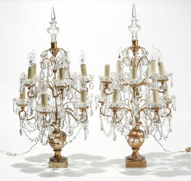 A motif de pot fleuri, deux lumières, cristal taillé et métal doré, H 45 cm 400/600
