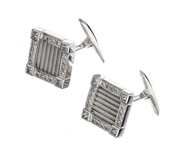 43. Paire de boutons de manchettes carrés sertis de diamants