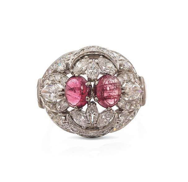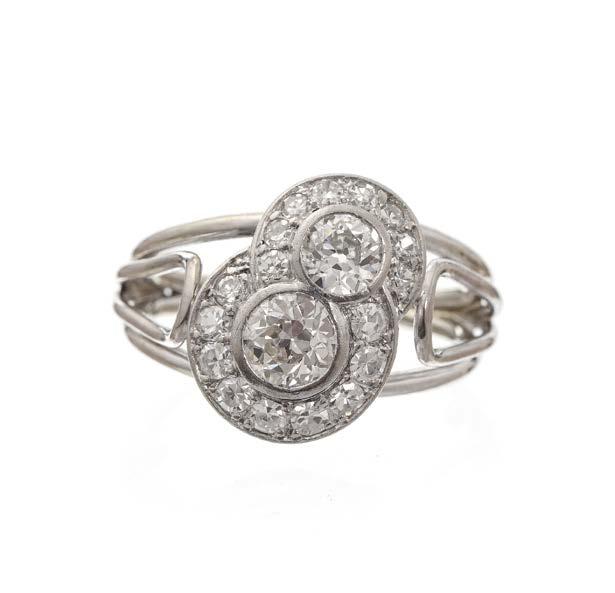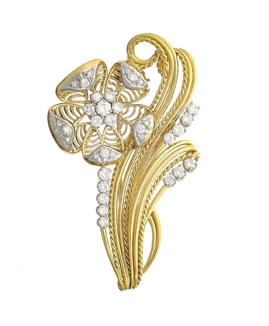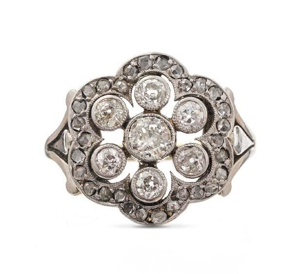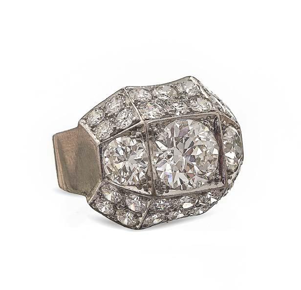 Cadran doré, index noir, probablement années 50, or 750 et platine, 15 x 13 mm, poids brut 70 g 1500/2000
