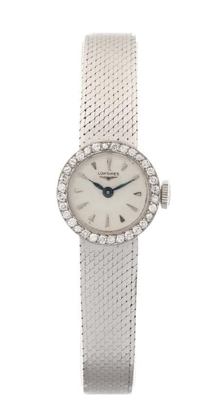 37. Longines, montre bracelet ronde mécanique sertie de diamants